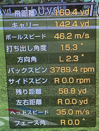 フェードで打った時の飛距離:160.4ヤード(ヘッドスピード:35.0m/s)