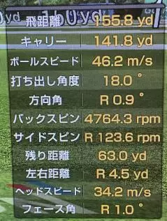 フェードで打った時の飛距離:155.8ヤード(ヘッドスピード:34.2m/s)