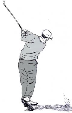 ネルソン自身は、ホーガン同様に右脚の位置を変えず、両モモの内側とヒップの外側を引き締めるイメージでターンを行い、手元はクラブの慣性で左親指側に曲がるだけ、という。