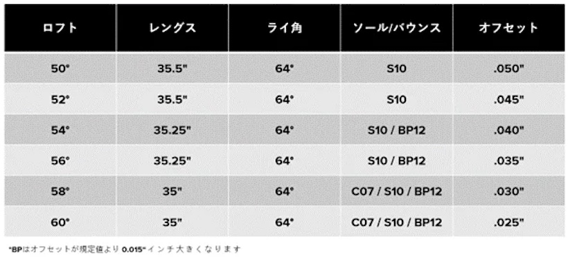 「Sugar Daddy IIIウェッジ」には、弾道とスピンに特化したワイドグルーブパターンを採用。ゴルファーにより多くのコントロール性能と安定性を提供。ワイドグルーブロジックは、ボールのカバーとより深く(0.002インチ)接触し、一般的ウェッジのナロウグルーブパターンに比べて約25%も接触面積が増える。この深い浸透により、ドライコンディションでの摩擦が改善され、スピンが増加。また、ワイドグルーブは水や汚れを排出し、ウェットコンディションでもトラクションを改善し、スピンを維持。ソール形状、バウンス角、フェース溝の幅の異なる3タイプを用意。ゴルファーの好み、用途、コース状況に合わせてベストな組み合わせがチョイスできるラインナップになった。