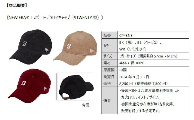 ブリヂストンとNEW ERAのコラボキャップは、NEW ERA(R)の定番9TWENTY型、ボールポーチは59FIFTY型をベースに、正面にBマーク・左サイドにNEW ERA(R)フラッグロゴをあしらったデザイン。生地にはコーデュロイを使用し、秋冬のゴルフにピッタリだ。キャップ以外にも、コラボ ボールポーチが発売される。