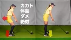 もうひとつ注意したいのが体重のかかり方。ツマ先側に体重がかかっていればいいですが、カカト側にかかっているとボールの方向にエネルギーがいかないのでよくありません。お腹が前に出るとカカト体重になるので、そり返らない程度に背スジを伸ばして構えましょう。この時に体幹を意識して、ゆっくり息を吐くといいですよ。左右の体重配分は5:5でOKです。