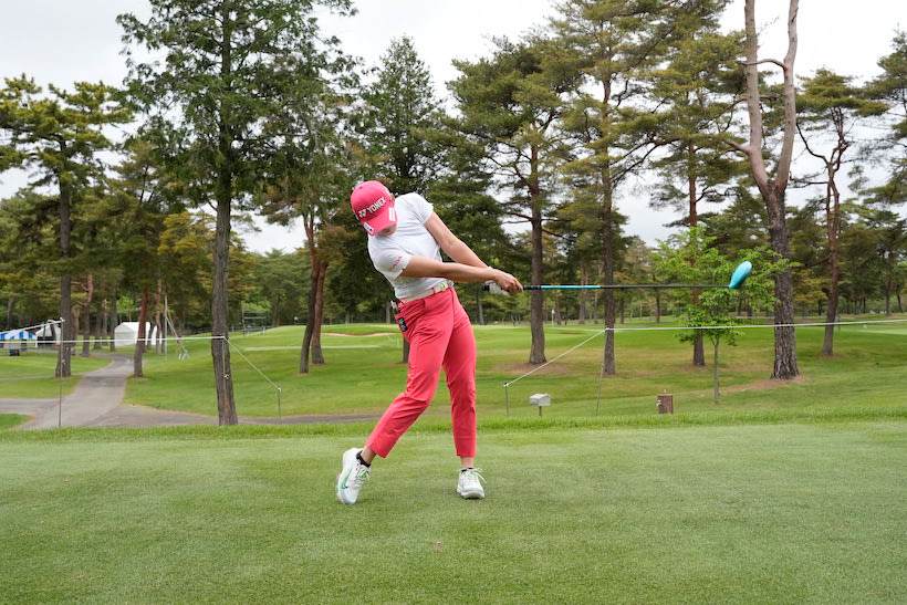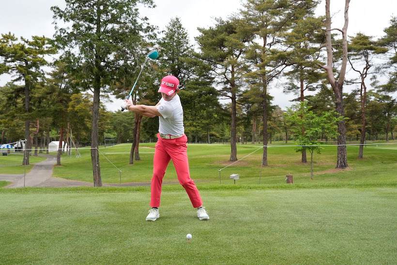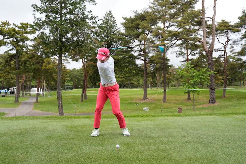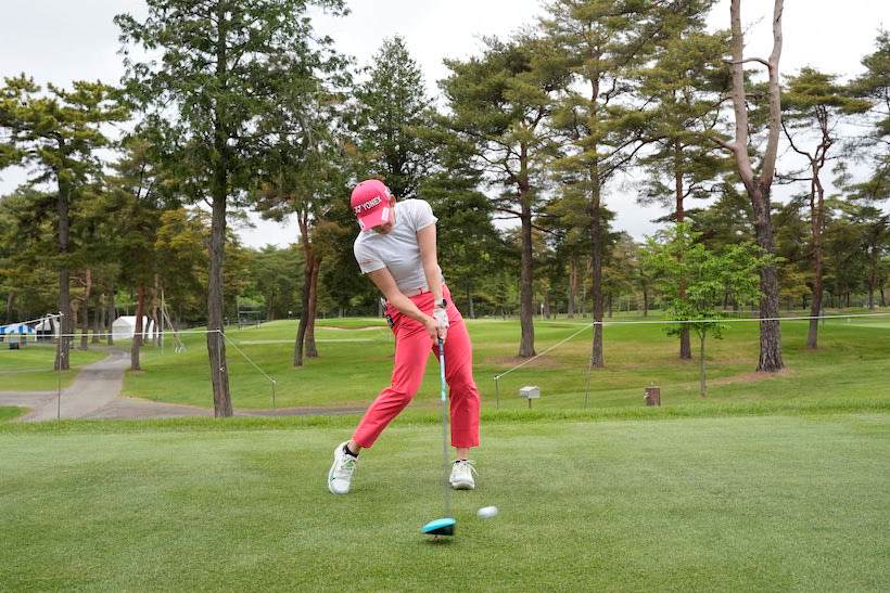 岩井明愛選手のようにバックスイングは当然、切り返し以降もスウェーすることなく、インパクトを迎えることができれば、ショットの精度はすこぶる安定します。