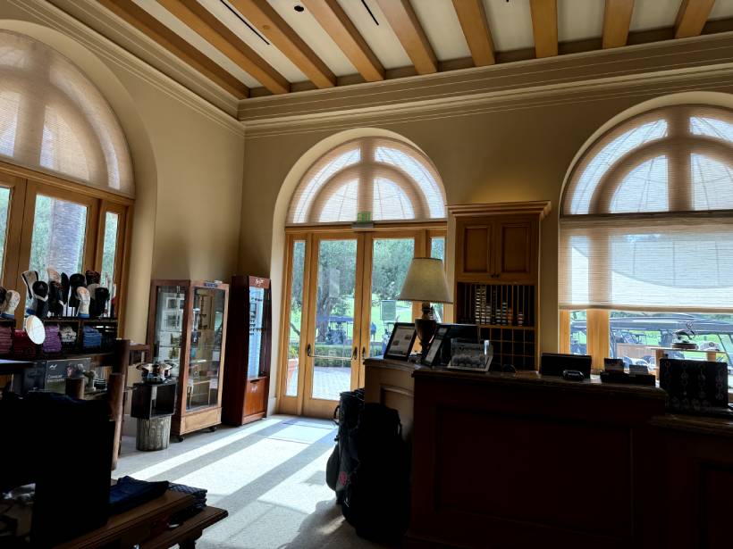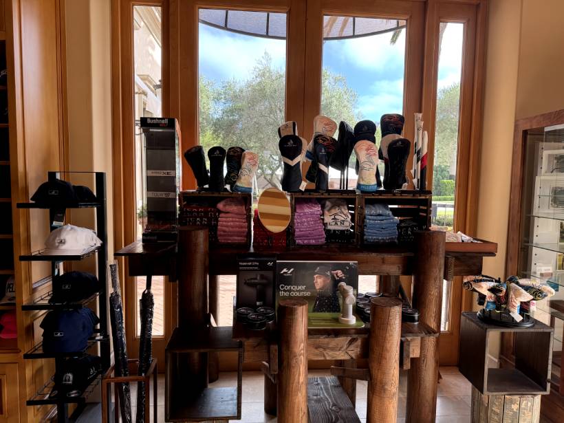 プロショップで受付。プレーフィのなかにサービス料やカート代なども入っているのだが、諸々合わせてこの日は1人あたり550ドルほど。日本円にして約8万円!これは、銀座でお寿司をたべる、みたいなエンターテイメント感覚で受け止める。といってもお値段に驚きを隠せぬまま、店内を探索。