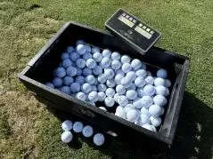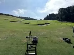 「海外ゴルファーのインスタグラムで見るやつだ〜」とルンルン。芝から打てるって最高。当たり前だがボールも綺麗。さらに、ペットボトルのお水が常温と冷えているものと用意されており、フリーなのも嬉しい。ついてからずっと、ホスピタリティが素晴らしい。