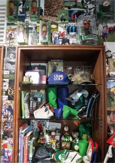 マスターズなどのメジャー大会のグッズも多数。タイガーウッズのバブルヘッド (写真上)も販売予定だとか。