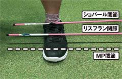 「みなさんは足の関節を意識したことがありますでしょうか? 知っておくとゴルフに役立つ関節が3つあります。ひとつは指の付け根の『MP関節』、ふたつめは甲の一番高い部分の『リスフラン関節』、もうひとつは足首の付け根の『ショパール関節』です」(宮澤氏)。