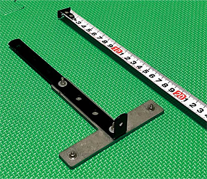 [3]測定は、アルミ製巻尺でアドレス・チェッカーのフェース面側の起点(0)から、矢印方向の延長する一点(A)までを正確に測定。単位は cm まで。下図に示すように、対辺に相当する距離と斜辺に相当する距離を測定。