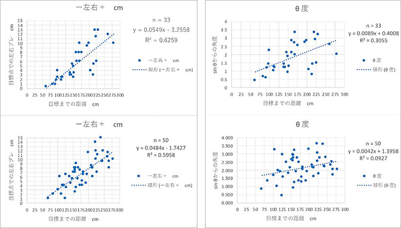 [5]統計処理のためには必ず不作為とするために、目標点も1m前後から3m前後の距離までに一回毎に変えるだけでなく、方向も毎回毎に変える必要あり。