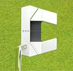 [2]パターフェース面で「アドレス・チェッカー」を小刻みに動かしながら、「目標点に向いている認識」を持ち、かつ「己の眼力を確信」するに至ってからアドレスを解く。