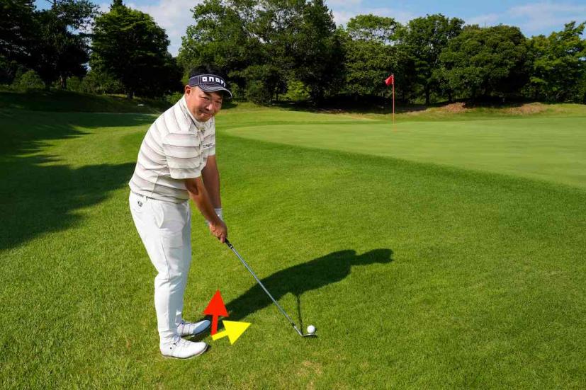 このようなライに限らず、グリーン周りでありがちなのが、難しく考えて特別な構えや打ち方をしてしまうこと。「寄せるのが難しそう!」というイメージが先行して、悪いイメージにとらわれてしまうと、よけいにうまく寄せることが難しくなります。