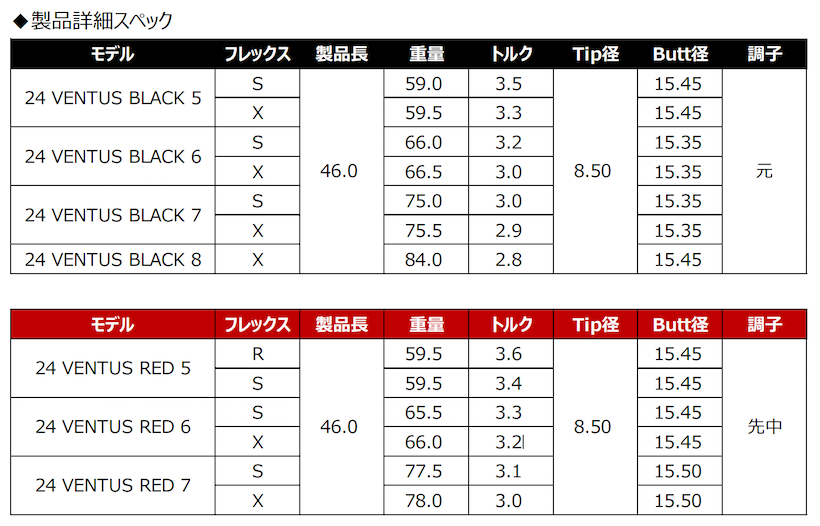『24VENTUS』シリーズは、初代VENTUSシリーズの特性やフィーリングをベースに、SPEED(スピード)、DISTANCE(飛距離)、ACCURACY(正確性)がさらに向上。アップデートした、『VeloCore Plusテクノロジー』を搭載し、VENTUS史上最高のシャフトに進化した。