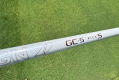 早速自分のドライバーに「GC」を挿してコースで打ってみました。僕が使ったのは55gの5Sで、トルク4.5の中調子ということになっています。ヘッドはタイトリストのGT4。45.25インチで組んで、総重量が310g、バランスD1.5、振動数は260cpmでした。