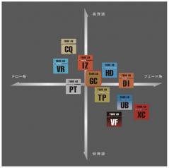 「GC」は特性的には「ど真ん中」のシャフトだといいます。「ど真ん中」というのはグラファイトデザインのポジショニングマップのど真ん中ということ。つまり、弾道は高弾道と低弾道の真ん中。そして球筋もドローとフェードの真ん中ということです。今までもグラファイトデザインでは「PT」や「TP」、「IZ」などの真ん中に近い扱いやすいシャフトをリリースしていますが、その中でも今回の「GC」が一番真ん中になるということです。