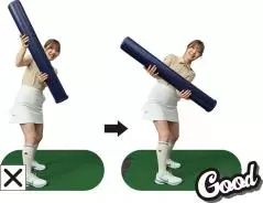 両手でストレッチポールを下から持ちテークバックの動きを確認しましょう