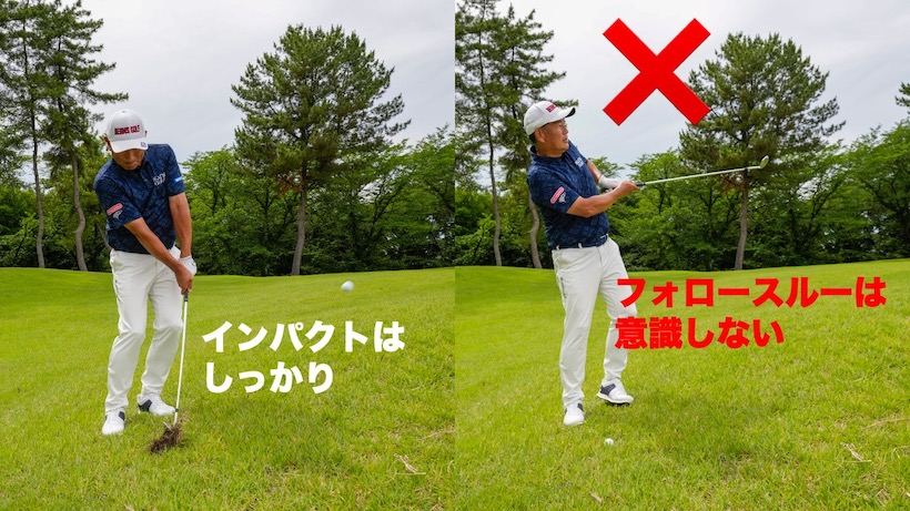 むしろインパクトで終わりのイメージでヒットし、フォロースルーは惰性にまかせる感覚です。