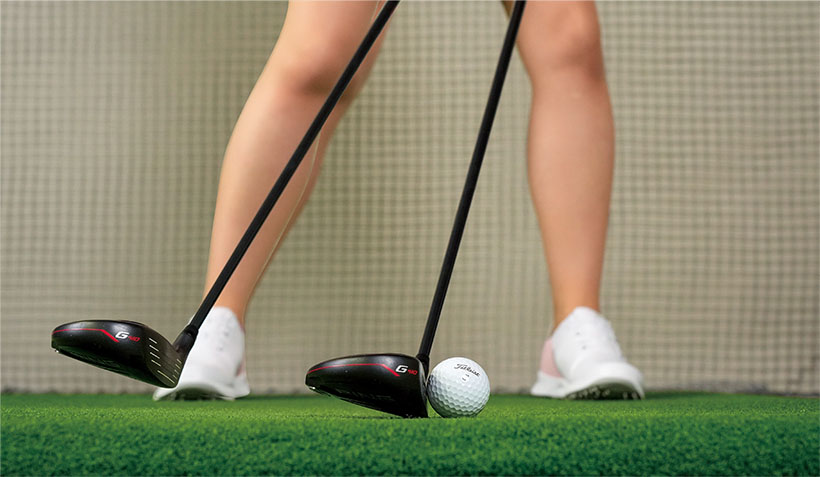 FWやUTはボールを横から払うようなイメージで打つのがいいとよく言いますよね。とくにソールが幅広いFWはソールを滑らせるように打つのが正しいと考えている方が多いのではないでしょうか。横から払い打つイメージが間違っているわけではありませんが、ボールの手前から滑らせるように打つとインパクトの打点が手前側にズレてダフリやトップが出やすくなります。