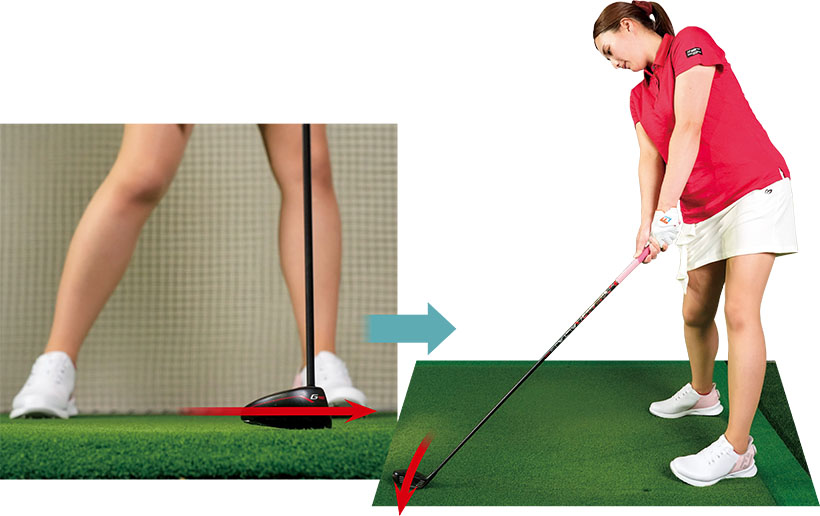 ダフリやトップが出やすい人は、アイアンに近い感覚でダウンブローに打つイメージを持とう。ソールのフェース寄りの部分が滑ってスムーズに振り抜ける。