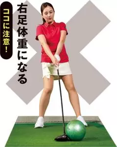04 体重が右足に多く乗るとハンドファーストのカタチにならず、強く押せない。