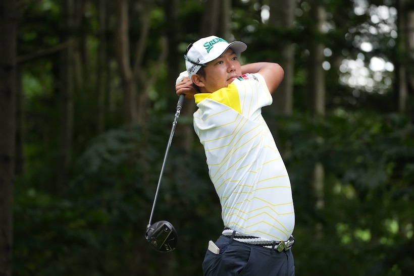 玉城海伍は「ZXi」の9度でテスト。『今、使っているZX5 MkⅡよりもZXiのほうが、ほんの少しヘッドが大きく見えて安心感があります。計測するとスピン量が減って、前に前に強く飛ぶようになったと感じています。写真も撮ってもらったし、成績出さないといけませんね(笑)』と新しいドライバーのためにも活躍したいと笑った。