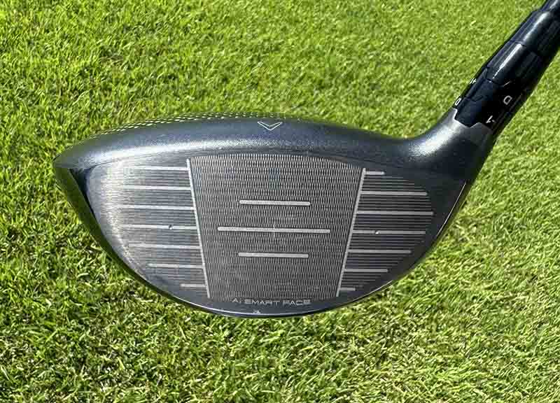 当たり前のことですが、小さいヘッドだからといって手を抜いた作りになっていたりはしないわけです。フェースにはキャロウェイお得意の「AIフェース」が採用されています。当然ながら、このMINIドライバー専用にAIで計算したフェース形状になっているんでしょう。