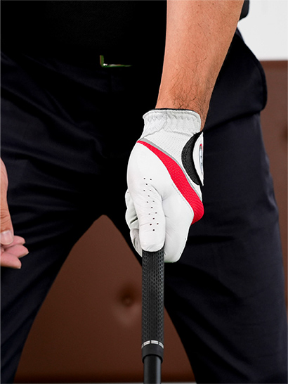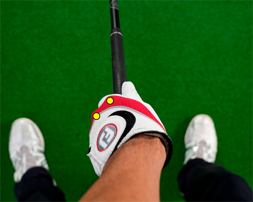 左手は自分から見て人さし指と中指の2つのナックルが見えるまでかぶせて握りましょう。薬指のナックルも少し見える握り方でもOKです。