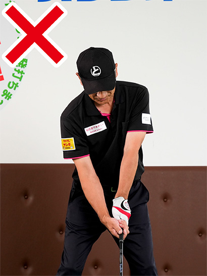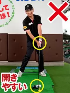 そのグリップを他人が真正面から見れば、左手の甲が目標方向を向いているようにしか見えません。
