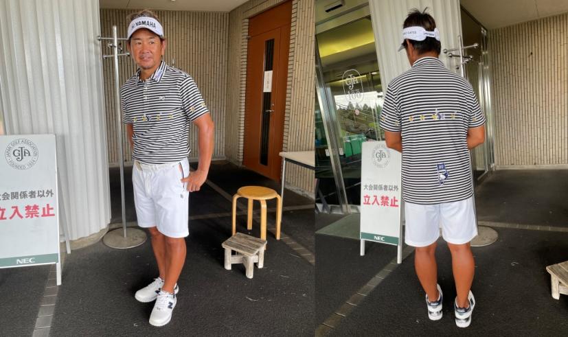 本来はトラディショナルな「正統派」のウエアが好み。JGAのオープン競技となれば、なおさら格式を重んじるスタイルで、との考えだったのを、短パンが解禁となったことで路線変更。