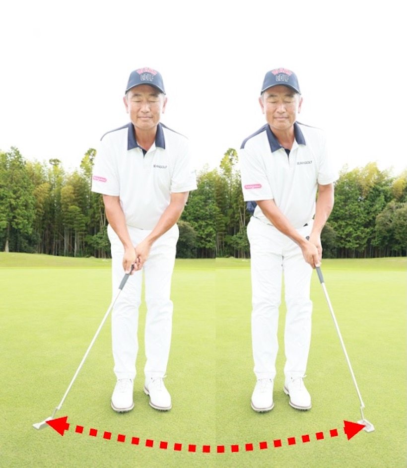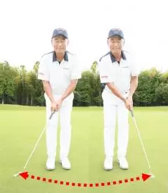何度も繰り返し振れる振り幅は、あなたが一番気持ちよく振れる振り幅です。その振り幅で打ったボールは大体同じところまで転がるはずなので、そのストロークで打った距離をその日の基準にします。