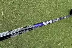 デザインは「バイオレット」から変更になりました。全体の色は当然ながら紫です。「SPEEDER」のロゴが小さくなり、「NX」ロゴは手元側に移動し、シャフトを一周するくらい大きなものに。