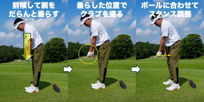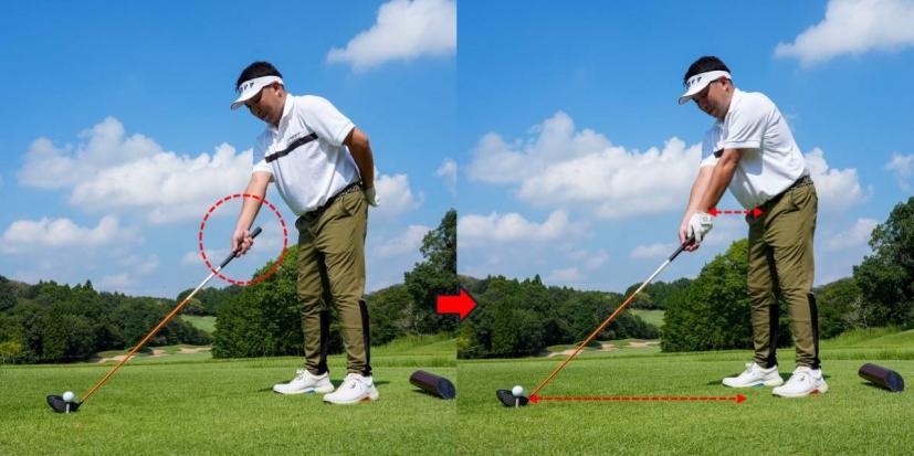 ボールと体との間隔を一定にするには、左手からアドレスを作り始めるのがおすすめです。
