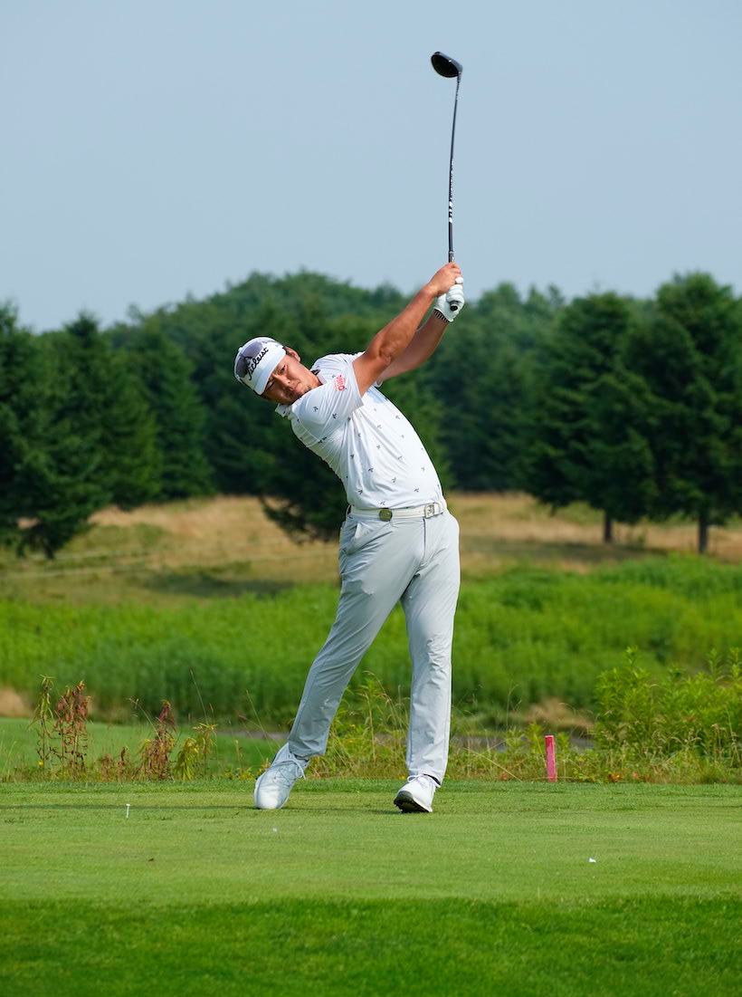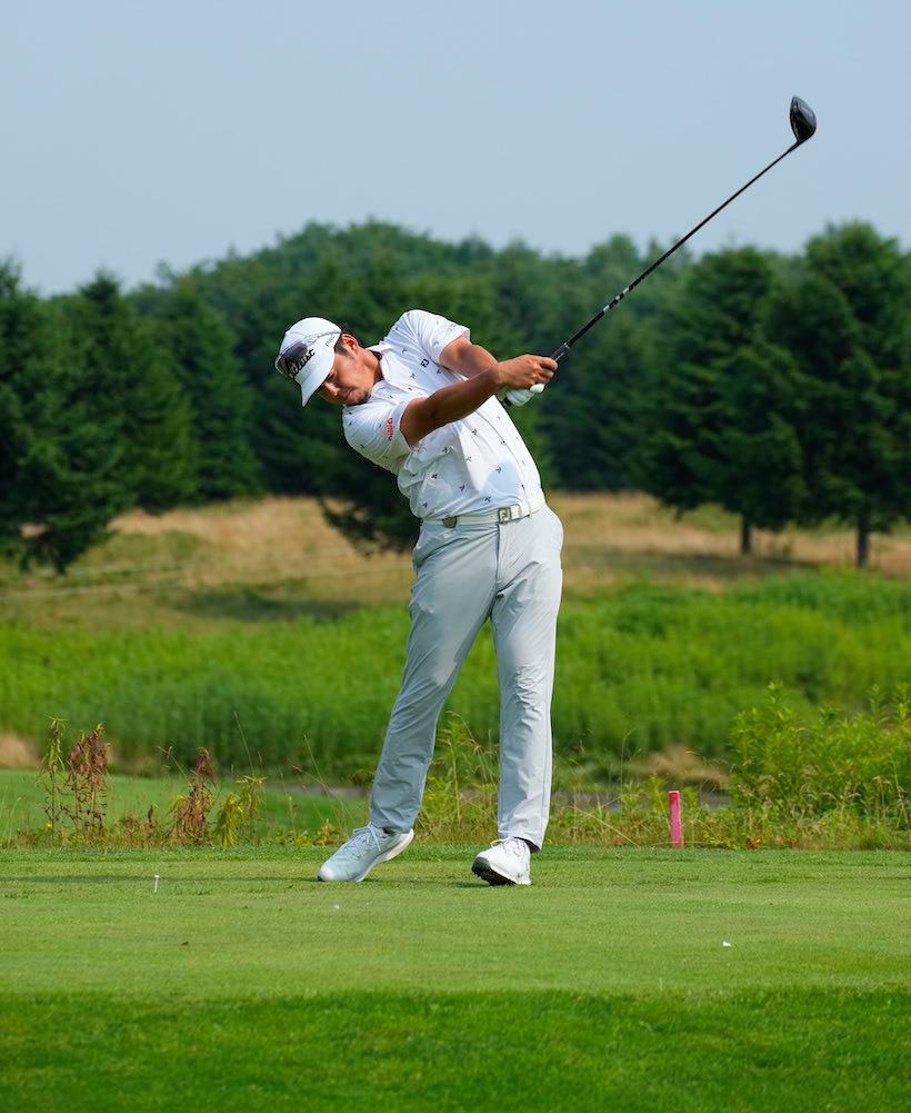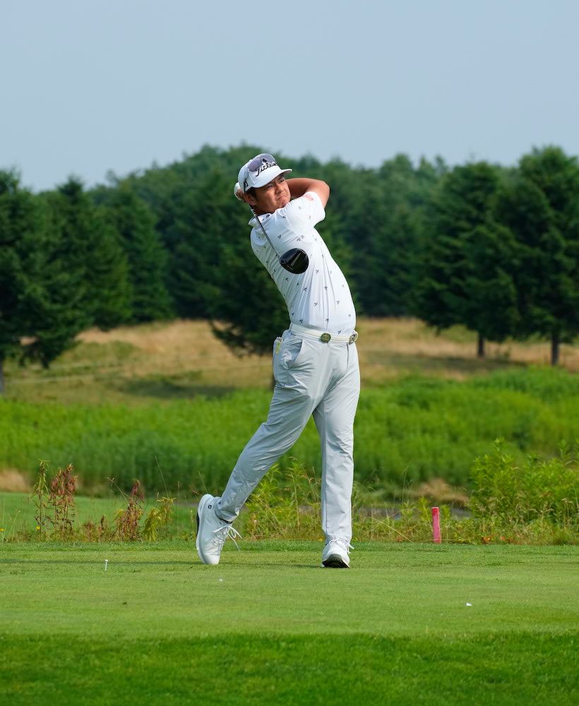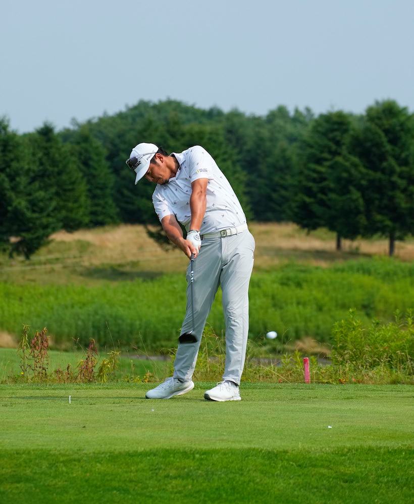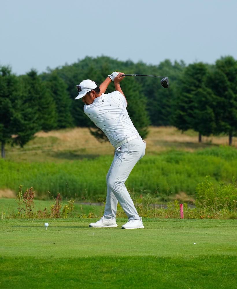 幡地選手はドライビングディスタンス平均308ヤード、ランク3位(2024.9.30現在)の飛ばし屋といえるプレーヤーです。しかしスイングはムダな力感がなく、極めてスムーズ。ある意味、スインガーと言って差し支えないバランスのよさが見てとれます。
