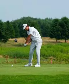 力任せのスイングはご法度。幡地選手のように下半身の回転主導のスイングなら飛距離も方向性もアップ!