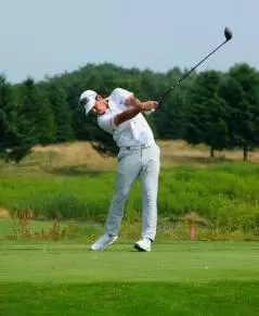 アベレージゴルファーをはじめとした多くのアマチュアゴルファーは飛ばしたいがゆえ、どうしても手や腕のチカラだけでクラブを振る傾向が。これではクラブヘッドの重さやシャフトのしなりといったものを感じとることができません。またカラダを淀みなく回転させることも難しく、幡地選手のようなスムーズスイングはできません。