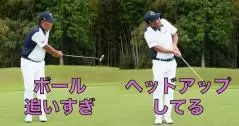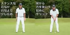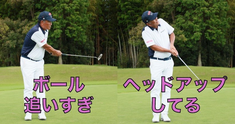それでもショートしてしまうなら、ちょっと打ち方を変えてもいいかもしれません。ショートする場合、ボールを追いすぎて体がカップ方向に動く、すくい打ってしまう、あるいはテークバックは大きいのにインパクトが緩む、といった原因が考えられますが、いずれにしてもしっかりインパクトできません。