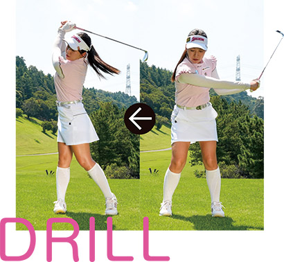 アイアンを使った逆素振りの練習もオススメ。フォロー側からバックスイング側にヘッドを戻すと、ヘッドの重みを感じながら放り投げる感覚がつかめる。