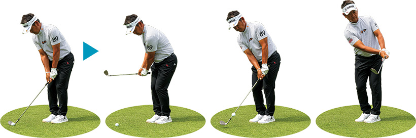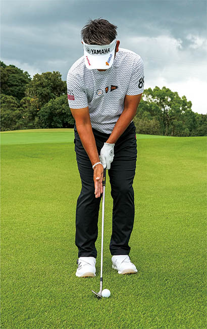 欧米の一流プロのアプローチを見ると、シャフトを真っすぐにしている人が多く、それを参考にしました。このように芝の種類やボールのライによってアレンジを加えるのが、ワンランク上のアプローチ術です。