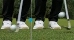 これは、私が海外の試合に出て学んだテクニックです。日本の高麗芝はボールが浮くので、ハンドファーストにインパクトしたほうが簡単で、ミスなく打てます。しかし、芝が薄くてボールが浮かない、いわゆるペタペタの洋芝はその打ち方が通用しません。