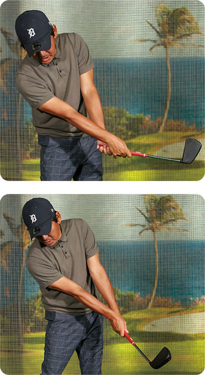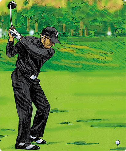 ただ、それだけではヘッドの走りも抑えられ、飛ばなくなる危険性があります。そこで、ボディターンで出力を上げる手段を組み合わせるわけです。〝右足の蹴り〟を生かすのは、その最も有効なメソッドと言えるでしょう」