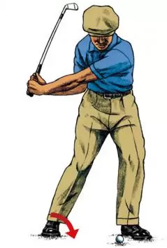 「ホーガン流のスイングを学んだ名手で、右足の使い方が抜群に上手いのは、グランドスラマーのゲーリー・プレーヤーです。いわゆる〝右足の蹴り〟で効率よく出力アップを実現していますが、独自のアレンジとして、右ヒザのフォワードプレスがあります。