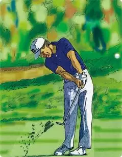 「プレーヤーはバンカーショットの名手でしたが、左ヒジを抜くような動きはほとんどなく、左腕を真っすぐ伸ばしたまま、左手甲を目標に向けて打ち抜いていました。これは、アプローチやアイアンショットも同様です。