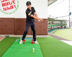 足踏みの感覚でバックスイングすればカラダが右にスエーすることなく、アドレスのポジションのままで腰と肩がスムーズに回転します。右足に体重がしっかり乗るだけでなく、飛ばしの捻転がつくれて飛距離が飛躍的にアップします。