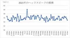 ちなみに、ヘッドスピードを短期間で上げるとすぐに落ちてしまうと心配されるかもしれませんが、ヘッドスピードを上げる練習を続けていれば、高水準で維持できます。こちらのグラフは2021年のヘッドスピードの推移ですが、1年間を通して56m/s前後を維持しています。
