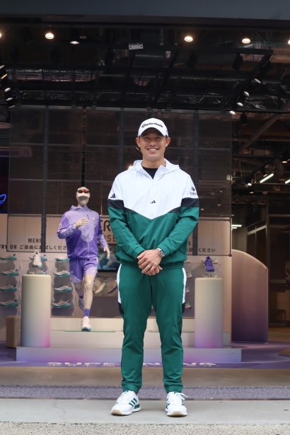 イベントが始まる前も終わった後も、ショップ内をウロウロ物色していたコリン。聞いてみると、「ツアープロは世界を転々とするので、各国の街のアディダスショップに行ってそれぞれの違いを見るのも楽しい。日本だけのデザインもあるんだ」とツアー中もアディダスウェアを楽しんでいる様子。