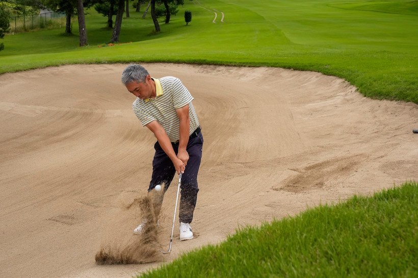 また、今回僕はバンカーからSで打ちましたが、バンス量は十分なので違和感なく打てました。でも、砂が薄めで下が硬いバンカーだと跳ねるリスクがあるので、その場合、Tの方が自然な感じでサクッと打てるかもしれません。普通に打つならS、テクニックを使うならTですね。適正で言うなら、ダウンブローに打つ人はハイバンスが欲しいのでHソールがいい。スクエアに構えればオートマチックにバンスが効きます。ボールに対して横から払うように入れる人、フェースを開いて構える人はTソール。地面に対する入射角でソールを選ぶといいでしょう。自分はどちらなのかわからなければSの一択ですね。