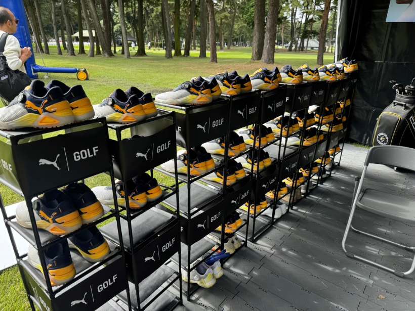 「PUMA GOLF」のブースでは、新作クラブの展示の他リッキーカラーが人気の新作シューズ「シャドウキャットニトロ」の試し履きが可能!なんとこちら、その場で履くだけでなく、履いたまま観戦が可能なのだ。「実際に芝を歩いてみて感じてほしい」というホスピタリティ溢れた貸し出し企画。もちろん無料です。