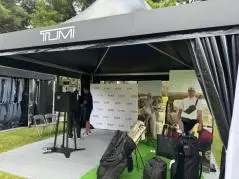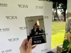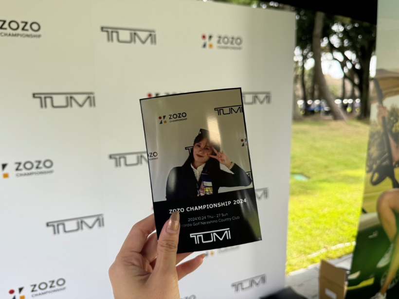 こちらでは、アメリカのアクセサリーブランド「TUMI(トゥミ)」のキャディバックを展示。会員登録をすると、ZOZO仕様の特別な背景で、写真を撮影することができる。