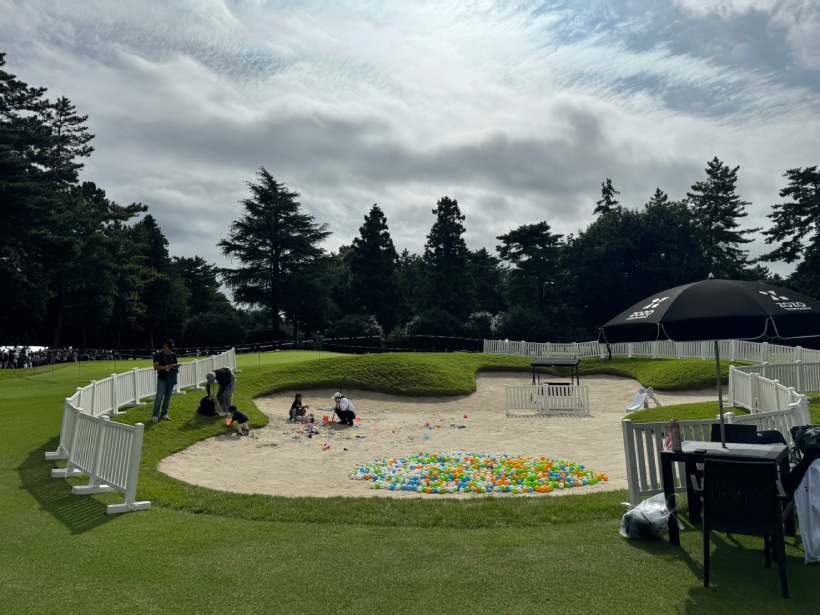ゴルフ好きのパパに連れられてやってきた小さな子供達が楽しそうに遊んでいた。