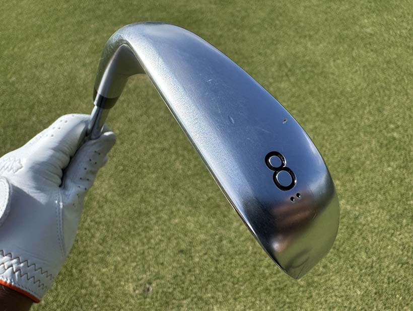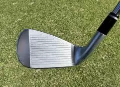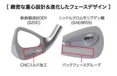構造は軟鉄鍛造のボディで、キャビティ内部をCNCミルド加工。精密な重心設計で、センター重心&低・深重心を実現しています。フェースはニッケルモリブデン鋼で、バックフェースには4本のグルーブを配し、高初速エリアを拡大、下打点にも強くなっています。
