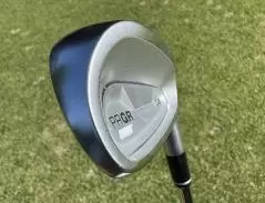 また、やはり厚めのソールが効いています。ダフり気味に入ってもソールが気持ちよく滑ってくれるのでお大きなミスになりません。入射角が緩やかな方がこのソールには合いそうですが、リーディングエッジ部分を少し落としてあるので、多少ダウンブロー気味に打っても刺さりすぎることがなかったです。この辺りよく考えられていると思いました。ただ、ヘッドスピードが速く、かなりダウンブローに打つ人には少し合わないとは思いますが。